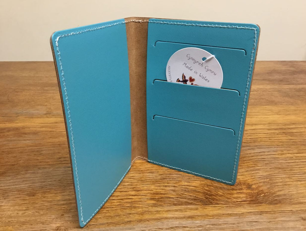 The Passport Cover holds an European Passport and has three insert slits on the inside.